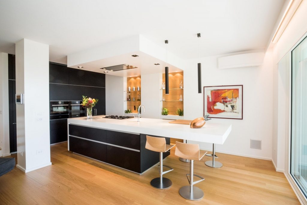 - Prestare attenzione alla scelta della cucina: prediligi soluzioni con penisola o isola, così da avere un bello spazio da vedere anche quando non sei in cucina.