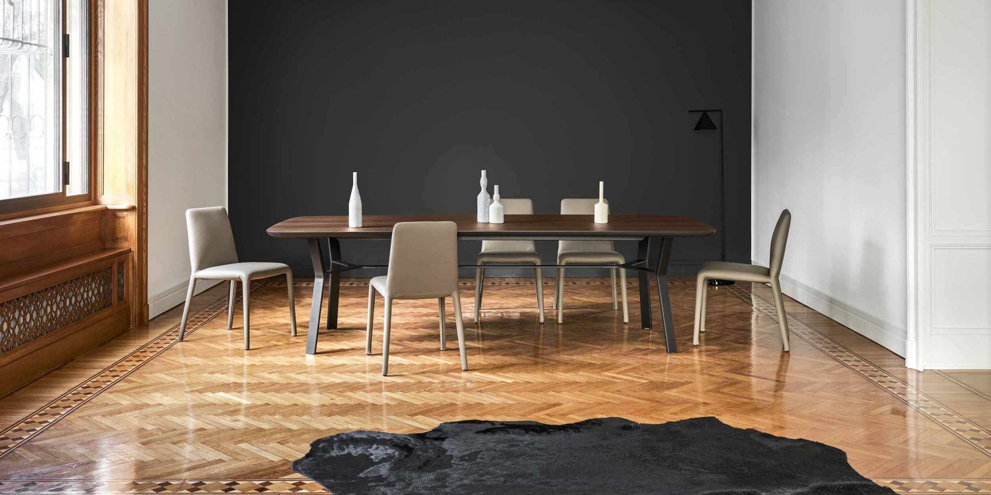 When choosing the right table, different parameters shall be taken into account: first of all the household size, but also whether or not you’ll be using it to receive guests. The size is very important, just like the shape. Round, square, oval or rectangular, whatever your choice might be, it is essential that everything is perfectly in line with the design of the rest of the room.